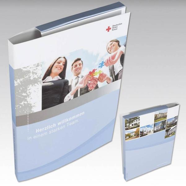 Kartonmappe mit schräger Titelseite und hohem Steg.