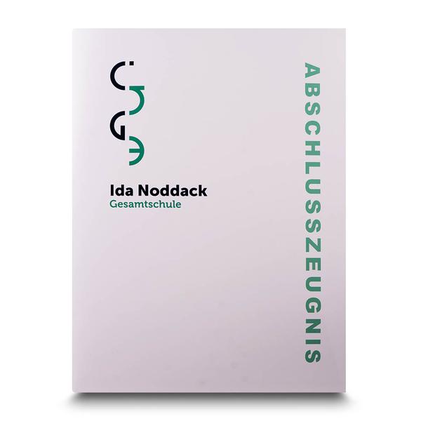 Die Abschlusszeugnis-Mappe ist ein professionelles und modernes Produkt für Schulen wie die Ida-Noddack-Gesamtschule. Die Mappe ist mit einem sehr modernen Design in Schwarz und Türkis gestaltet. Der Titel „ABSCHLUSSZEUGNIS“ ist groß und vertikal am rechten Rand platziert. Innen verfügt die Mappe über zwei gesteckte Laschen und einen Visitenkartenschlitz, was eine geordnete und repräsentative Übergabe von Dokumenten ermöglicht. Eine matte Li-Brillantlack-Veredelung verleiht der Mappe eine hochwertige Haptik. Diese hochwertige Mappe hilft der Ida-Noddack-Gesamtschule, einen professionellen und kompetenten Eindruck zu hinterlassen. Ihre durchdachte Funktionalität und das ansprechende Design spiegeln den Qualitätsanspruch und die Seriosität der Schule wider. Sie ermöglicht eine effiziente und würdige Übergabe der Abschlusszeugnisse und stärkt so die Bindung an die Bildungseinrichtung.