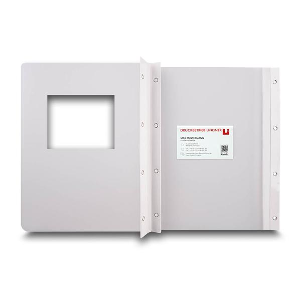 9518 - Metallöse für Mappenabheftung in Ordnern 5,0 X 6,2 MM, silber 8664 - Visitenkartentasche quer 105 x 60 mm, transparent