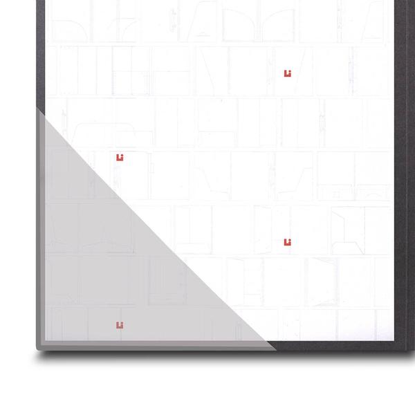 8214 - Abheftvorrichtung innen und zum Rausschieben für außen, 150 x 20 mm, weiß 9206 - Dreiecktasche transparent, 150 x 150 mm 150 x 150 mm, transparent