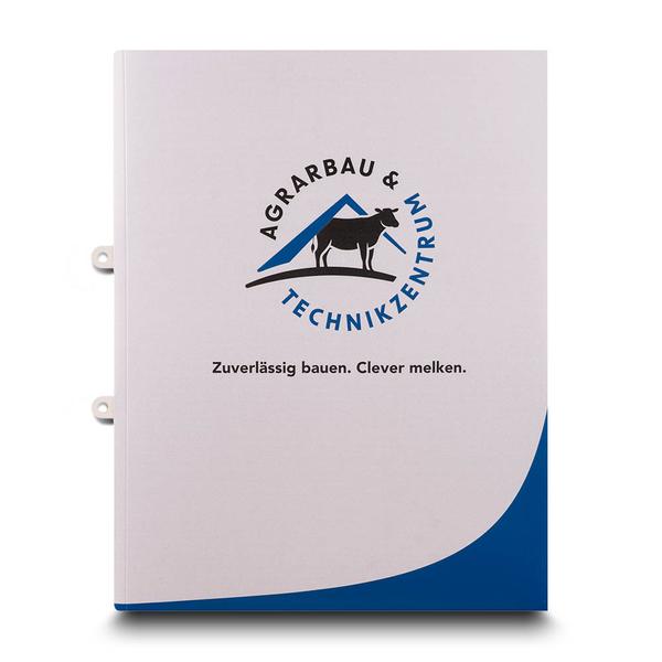 Die Angebotsmappe Agrarbau Technikzentrum ist eine hochfunktionale Präsentationslösung, die durch eine großzügige, schräge Innentasche und eine flexible Abheftvorrichtung für innen und außen besticht. Das Design auf der Vorderseite präsentiert stolz das Firmenlogo sowie den Slogan „Zuverlässig bauen und Clever melken“, während ein präziser Visitenkartenschlitz auf der linken Tasche die persönliche Kontaktaufnahme erleichtert. Wir vom Mappenhaus unterstützen das Agrarbau Technikzentrum dabei, ihre spezialisierten Leistungen im Stallbau und der Melktechnik für die Agrarbranche haptisch brillant und professionell zu untermauern. Das Technikzentrum erreicht mit dieser Mappe das Ziel, komplexe Bauangebote strukturiert zu übergeben und gleichzeitig ihre Marken-Botschaften hochwertig beim Landwirten zu verankern. Die robuste Verarbeitung sorgt für eine sichere Aufbewahrung technischer Unterlagen und stärkt den Markenkern als zuverlässiger Partner für moderne Agrarlösungen. Als Hersteller helfen wir dabei, die fachliche Kompetenz durch exzellente Druckqualität spürbar zu machen und einen bleibenden, seriösen Eindruck bei jeder Projektvorstellung zu hinterlassen.