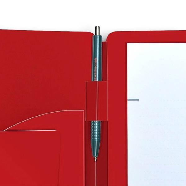 Eine einfache und kostengünstige Möglichkeit Mappen mit einem Stift auszustatten, ist es, eine Stifthalterschlitzung in die Mappe zu stanzen. Hat eine Mappe eine solche Vorrichtung für einen Stift, weist diese am oberen Rand im Bund eine Aussparung auf. Dafür geeignet sind Mappenmodelle mit einem Mittelsteg von 10mm. Beispiele für Mappenmodelle sind: #50015; # 5342 Fragen Sie Ihren Mappen-Berater, er hilft Ihnen gerne weiter.