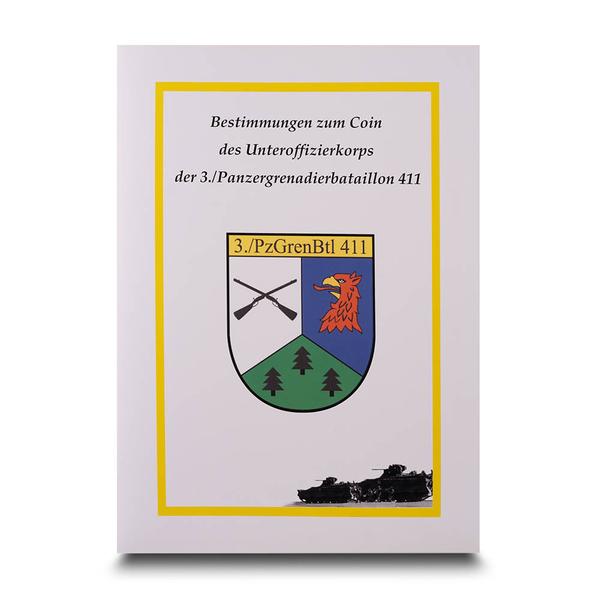 Die Deckelmappe Unteroffiziere ist ein professionelles und vielseitiges Produkt für militärische Organisationen. Die 6-Seiten-Mappe besticht durch ein traditionelles, militärisch geprägtes Layout mit einem zentralen Wappen und dem Titel "Bestimmung zum Coin des Unteroffizierkorps". Sie verfügt innen über Omegaschlitze in den Ecken jeder Seite, die Unterlagen sicher fixieren. Die Mappe ist innen und außen vollflächig bedruckt. Diese hochwertige Mappe hilft der Organisation, ihre Markenbotschaft professionell und kompetent zu kommunizieren. Ihre durchdachte Funktionalität und das ansprechende Design spiegeln den Qualitätsanspruch und die Seriosität wider. Sie ermöglicht eine effiziente und repräsentative Übergabe von Informationen an Soldaten und stärkt so die Bindung an die Organisation.