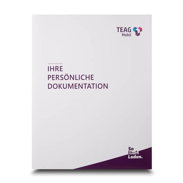 Die Dokumentationsmappe TEAG Mobil ist ein professionelles und vielseitiges Produkt für Energie- und Mobilitätsanbieter wie TEAG Mobil. Die Registermappe ist innen ganzflächig lila bedruckt und trägt auf der Vorderseite die Überschrift "Ihre persönliche Dokumentation". Sie ist mit drei beschrifteten Registertaben, zwei Laschen und einer weißen Tasche ausgestattet. Ein Magnetverschluss und die rechte Lasche sorgen für einen sicheren Halt der Dokumente. Die Mappe ist mit Li-Brillantlack matt veredelt. Diese hochwertige Mappe hilft TEAG Mobil, bei Kunden einen bleibenden und kompetenten Eindruck zu hinterlassen. Ihre durchdachte Funktionalität und das ansprechende Design spiegeln den Qualitätsanspruch und die Seriosität des Unternehmens wider. Sie ermöglicht eine effiziente und repräsentative Übergabe von Prüfprotokollen, Plänen und Datenblättern und stärkt so die Kundenbindung in der Energie- und Mobilitätsbranche.