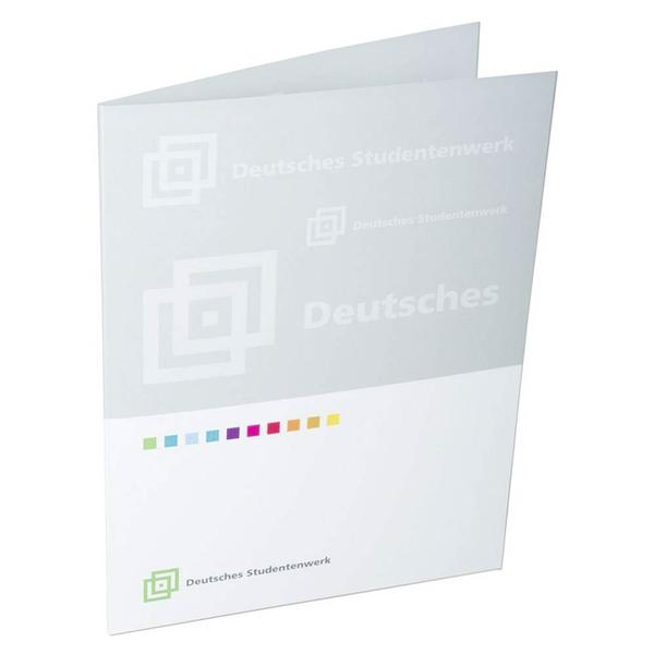 Die Doppeltaschen Mappe Studentenwerk ist ein professionelles Produkt für Organisationen wie das Deutsche Studentenwerk. Diese Mappe im Format 24,0 x 31,5 cm besticht durch ihr schlichtes, modernes Design in Hellgrau und Weiß mit dezenten Logo-Wiederholungen. Sie verfügt über zwei geklebte Taschen (links und rechts) für eine übersichtliche Dokumentenablage sowie einen Visitenkartenschlitz und einen Fotoecken-Schlitz. Diese hochwertige Mappe hilft dem Deutschen Studentenwerk, seine Markenbotschaft professionell zu kommunizieren. Ihre durchdachte Funktionalität und das seriöse, ansprechende Design spiegeln den Qualitätsanspruch und die Verlässlichkeit der Organisation wider. Sie ermöglicht eine effiziente und repräsentative Übergabe von Infomaterialien an Studierende und stärkt so das Vertrauen und das positive Image des Studentenwerks.