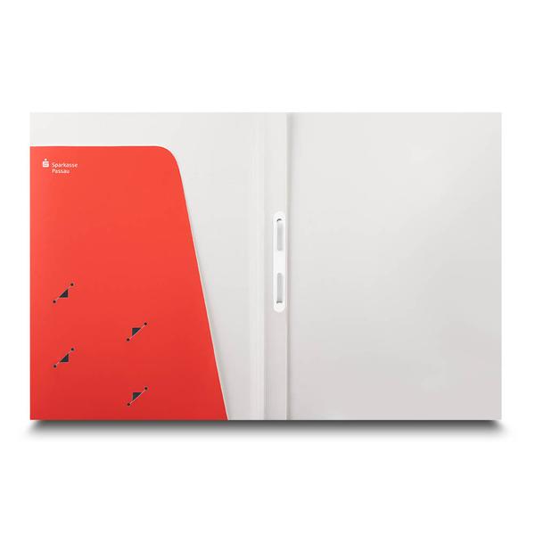 Die Mappe Generationenmanagement Sparkasse Passau ist ein hochwertiger Schnellhefter aus edlem 300g Natureline Creme Papier, der durch seine natürliche Haptik und das klare Corporate Design besticht. Ausgestattet mit einer praktischen Schnellheftermechanik im Inneren sowie silbernen Abheftösen für die externe Archivierung bietet sie maximale Funktionalität für wichtige Dokumente. Eine integrierte rote Tasche mit zwei diagonalen Visitenkartenschlitzen sorgt zudem für eine organisierte Übergabe persönlicher Ansprechpartnerdaten. Wir vom Mappenhaus unterstützen die Sparkasse Passau dabei, ihre sensiblen Leistungen im Bereich Vorsorge und Finanzen mit einer hochwertigen Marken-Präsentation zu unterstreichen. Diese Drucksache dient als seriöser Begleiter für Beratungsgespräche in der Bankenbranche und hilft dem Kunden, komplexe Themen sicher und strukturiert zu bündeln. Als Hersteller garantieren wir eine exzellente Verarbeitung, die den Qualitätsanspruch der Sparkasse widerspiegelt und die emotionale Markenbindung bei den Kunden nachhaltig stärkt.