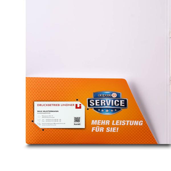 Die Kundenmappe expert aus hochwertigem 300g White Design Karton überzeugt durch eine edle matte Cellophanierung und eine innovative, herausschiebbare Abheftvorrichtung, die eine flexible Handhabung für Außen- und Inneneinsätze ermöglicht. In der Elektronik- und Handelsbranche nutzt die expert Warenvertrieb GmbH dieses professionelle Ordnungssystem, um Presseunterlagen, Angebote oder Garantiebelege im strikten Corporate Design inklusive persönlicher Ansprechpartner-Visitenkarte sicher zu überreichen. Als Hersteller unterstützen wir expert dabei, ihren kundenorientierten Markenkern haptisch brillant zu präsentieren und die hohe Servicekompetenz der Marke durch eine perfekt verarbeitete Pressemasse sichtbar zu machen. Wir helfen dabei, die Marken-Botschaften hochwertig zu vermitteln und durch diese funktionale Präsentationslösung einen bleibenden, kompetenten Eindruck bei Geschäftspartnern und Kunden im Techniksegment zu hinterlassen.