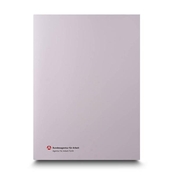 Die Mappe der Agentur für Arbeit Fürth ist ein praktisches und professionelles Kommunikationsmittel für Ihre Dienstleistungen. Als Stecklaschen-Mappe mit einer Füllhöhe von 4 mm ist sie ideal für die Übergabe von Bewerbungsunterlagen, Formularen oder Informationsbroschüren. Der Mappen-Titel ist mit dem Logo der Agentur für Arbeit Fürth bedruckt, was für einen klaren und offiziellen Auftritt sorgt. Die Agentur für Arbeit Fürth, bekannt für ihre Unterstützung bei der Arbeitsvermittlung und -beratung, nutzt diese Mappe, um den Beratungsprozess zu strukturieren und allen Klienten die nötigen Unterlagen geordnet an die Hand zu geben. Wir als Ihre Druckerei sind Spezialisten für Präsentationsmappen, die besonders sind und Marken-Botschaften hochwertig präsentieren. Wir unterstützen die Agentur für Arbeit Fürth dabei, ihre Beratungskompetenz und Servicequalität durch funktionale und ansprechende Druckprodukte zu kommunizieren.