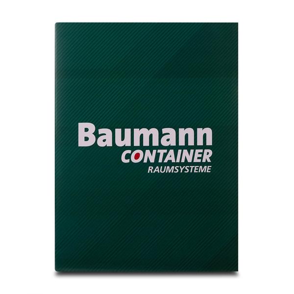 Die Mappe für Container Raumsysteme ist die ideale Lösung, um Ihre flexiblen und effizienten Raumkonzepte professionell zu präsentieren. Diese Top Standard Mappe verfügt über eine Füllhöhe von 4 mm und praktische Laschen zum sicheren Unterbringen der Unterlagen. So lassen sich Exposés, technische Zeichnungen und Angebote übersichtlich bündeln. Baumann Container Raumsysteme, bekannt für ihre maßgeschneiderten und vielseitigen Raumsysteme, nutzt diese Mappe, um Kunden ihre flexiblen und innovativen Lösungen für temporäre oder dauerhafte Raumbedürfnisse klar und überzeugend vorzustellen. Dies unterstreicht ihre Expertise in modularer Bauweise. Wir als Ihre Druckerei sind Spezialisten für besondere Präsentationsmappen, die Marken-Botschaften hochwertig präsentieren. Wir unterstützen Baumann Container Raumsysteme dabei, ihre Botschaft von funktionalen und individuellen Raumlösungen durch ein haptisch und optisch überzeugendes Medium zu kommunizieren.