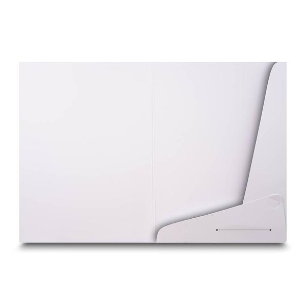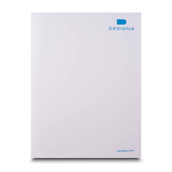 Die Mappe DESIGNA besteht aus stabilem 300g White Design Karton mit matter Li-Brillantlack-Veredelung und zeigt auf der Titelseite das Logo auf klarem weißen Hintergrund. Innen halten zwei gesteckte Laschen Unterlagen sicher zusammen, während ein Visitenkartenschlitz auf der unteren Lasche direkten Kontakt ermöglicht. Die reduzierte Gestaltung lenkt den Blick gezielt auf Inhalte und sorgt für eine strukturierte Übergabe von Dokumenten. Als Hersteller unterstützen wir die DESIGNA Verkehrsleittechnik GmbH dabei, technische Informationen übersichtlich zu präsentieren und ihren professionellen Auftritt im Projekt- und Kundenkontakt zu stärken.