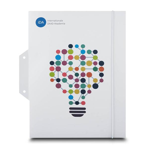 Die Mappe Deutscher Akademischer Austauschdienst ist ein professionelles und vielseitiges Produkt für Organisationen wie den DAAD. Die Mappe ist in zwei Design-Sorten erhältlich: eine mit Glühbirnen-Motiv und eine mit Linien-Design. Beide sind gleich ausgestattet und bestehen aus 300g Natureline Premium Papier mit matter Veredelung. Sie verfügt über zwei gesteckte Laschen auf der rechten Seite, eine Top Allround Abheftung und einen weißen Gummizugverschluss, der die Dokumente sicher hält. Diese hochwertige Mappe hilft dem DAAD, seine Markenbotschaft professionell und kompetent zu kommunizieren. Ihre durchdachte Funktionalität und das ansprechende Design spiegeln den Qualitätsanspruch und die Seriosität der Organisation wider. Sie ermöglicht eine effiziente und repräsentative Übergabe von Informationen an Studierende und Partner und stärkt so die Bindung an die Organisation.