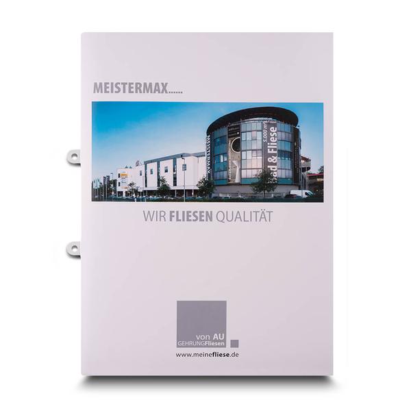 Die Mappe "Fliesen Meistermax" ist eine beeindruckende Imagemappe, die Ihre Kunden in die Welt exquisiter Badgestaltung entführt. Diese Laschen-Mappe ist dazu konzipiert, die beeindruckende Vielfalt von 100 Bädern auf 9000 m² zu präsentieren – ein klares Zeichen für Ihre Gestaltungs- und Umsetzungsstärke. Im Innenteil ist eine praktische Innen- und Außenabheftung eingeklebt, die detaillierte Projektinformationen sicher und übersichtlich aufnimmt. Artfliesen, Ihr Spezialist für hochwertige Fliesen und Badkonzepte, nutzt diese Mappe, um potenziellen Kunden die Faszination und Qualität ihrer Arbeit auf greifbare Weise zu vermitteln. Wir als Ihre Druckerei sind Experten für Präsentationsmappen, die besonders sind und Marken-Botschaften hochwertig präsentieren. Wir unterstützen Artfliesen dabei, ihre kreative Vision und ihr Können eindrucksvoll zu kommunizieren.