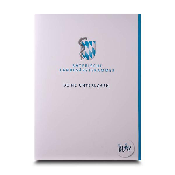 Die Fortbildungsmappe - Deine Unterlagen , aus hochwertigem 300g White Design Karton , überzeugt durch ein schlichtes weiß-blaues Design mit mattem Li-Brillantlack und einer innovativen, herausschiebbaren Abheftvorrichtung für maximale Flexibilität. In der medizinischen Weiterbildungsbranche nutzt die Bayerische Landesärztekammer dieses funktionale Ordnungssystem, um Ärzten sämtliche Kursmaterialien inklusive Visitenkarte strukturiert und unter dem offiziellen Landeswappen gesammelt zu überreichen. Wir unterstützen die Kammer dabei, ihren seriösen Markenkern haptisch perfekt zu transportieren und die Bedeutung lebenslangen Lernens durch eine erstklassige Aufbereitung der Dokumente zu unterstreichen.