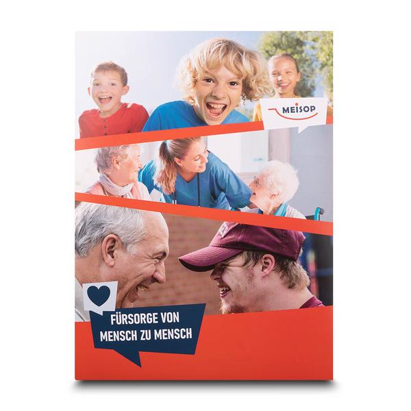 Die Mappe Fürsorge von Mensch zu Mensch ist ein emotionales und funktionales Produkt für Unternehmen im Pflege- und Sozialwesen wie Meisop. Diese Mappe besticht durch ihr bildstarkes Layout, das Freundlichkeit und Fürsorge symbolisiert. Die Mappe verfügt über insgesamt sechs Laschen (drei links, drei rechts), die eine geordnete und sichere Präsentation von Dokumenten ermöglichen. Ein diagonaler Visitenkartenschlitz auf der rechten untere Lasche sorgt für die professionelle Übergabe von Kontaktdaten. Diese hochwertige Mappe hilft Meisop, ihre Markenbotschaft professionell und kompetent zu kommunizieren. Ihre durchdachte Funktionalität und das ansprechende Design spiegeln den Qualitätsanspruch und die Seriosität des Unternehmens wider. Sie ermöglicht eine effiziente und repräsentative Übergabe von Informationen an Klienten und Partner und stärkt so das Vertrauen und die Kundenbindung im Pflegebereich.