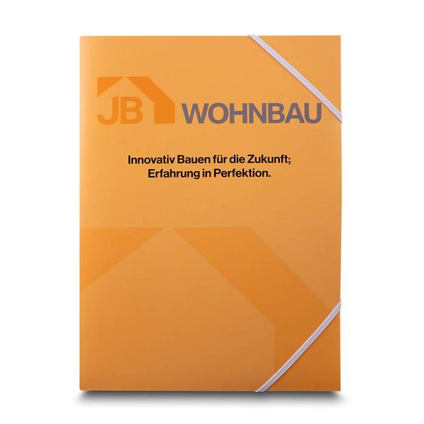 Die Mappe JB Wohnbau ist ein professionelles und vielseitiges Produkt für Bauunternehmen wie JB Wohnbau. Diese 6-Seiten-Mappe, im branchenpassenden Design mit Logo und Slogan auf orangenem Hintergrund, ist ideal für die Präsentation von Bauprojekten. Innen bietet sie Informationen über Planung, Rohbau, Ausbau und Fertigstellung. Die Mappe verfügt über eine Abheftvorrichtung, eine rechte Tasche mit Visitenkartenschlitz und einen Gummizugverschluss, was für eine geordnete und sichere Archivierung sorgt. Diese hochwertige Mappe hilft JB Wohnbau, ihre Markenbotschaft professionell und kompetent zu kommunizieren. Ihre durchdachte Funktionalität und das ansprechende Design spiegeln den Qualitätsanspruch und die Seriosität des Unternehmens wider. Sie ermöglicht eine effiziente und repräsentative Übergabe von Informationen an Kunden und Partner und stärkt so die Kundenbindung in der Baubranche.