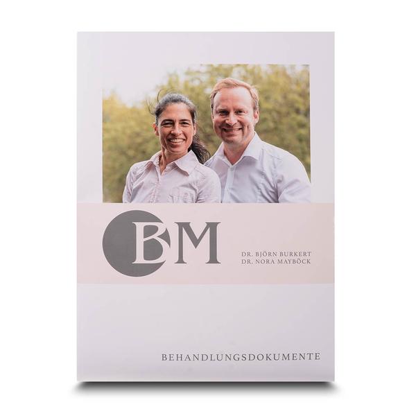 Die Mappe Lipödem-Patientinnen ist ein professionelles und vielseitiges Produkt für Praxen wie die Praxis BM Bochum. Diese Doppeltaschen-Mappe dient zur Organisation von Behandlungsdokumenten. Die Vorderseite ziert ein Foto der beiden Ärzte und das Logo, was Vertrauen schafft. Die Mappe verfügt über zwei halbrunde Taschen (links und rechts) und einen Visitenkartenschlitz. Eine glänzende Cellophanierung und eine Hochprägung verleihen der Mappe eine hochwertige Optik. Diese hochwertige Mappe hilft der Praxis BM Bochum, ihre Markenbotschaft professionell und kompetent zu kommunizieren. Ihre durchdachte Funktionalität und das ansprechende Design spiegeln den Qualitätsanspruch und die Seriosität der Praxis wider. Sie ermöglicht eine effiziente und repräsentative Übergabe von Informationen an Klienten und Partner und stärkt so die Kundenbindung im medizinischen Bereich.