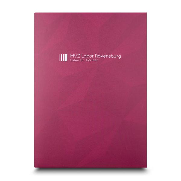 Wir vom Mappenhaus unterstützen das MVZ Labor Ravensburg GbR dabei, seine medizinische Fachexperte und präzise Analytik in der Gesundheitsbranche haptisch brillant zu präsentieren. Die Mappe MVZ Labor Ravensburg ist eine exklusive 6-Seitenmappe aus stabilem 350g Natureline Premium Papier, die durch eine beidseitige Li-Brillantlack matt Veredelung eine besonders hochwertige Haptik erhält. Das durchdachte Innenleben bietet mit zwei rosaroten Taschen mit Visitenkartenschlitz und einer transparenten Klemmschiene für bis zu 50 Blatt maximalen Platz für Befunde und Patientenunterlagen. Diese Drucksache dient dem Ziel, die Marken-Botschaften hochwertig zu vermitteln und Ärzten sowie Patienten eine strukturierte und vertrauenserweckende Informationssammlung zu überreichen.