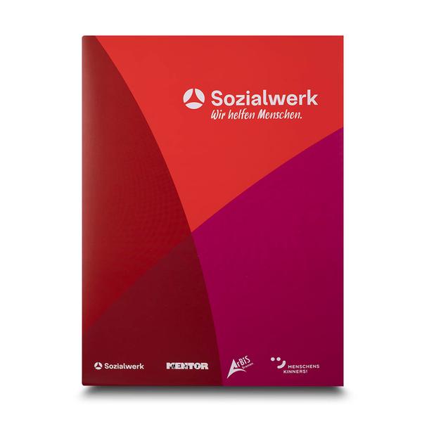 Die Mappe Sozialwerk Wir helfen Menschen ist ein professionelles und ansprechendes Produkt für soziale Organisationen wie das Sozialwerk der Freien evangelischen Gemeinden in Bremen. Das Layout in drei Rottönen mit der Überschrift Sozialwerk „Wir helfen Menschen“ vermittelt Wärme und Engagement. Die Innenseite ist mit einer runden, großen Tasche ausgestattet, die als Logo dargestellt wird und für eine geordnete Präsentation von Dokumenten sorgt. Eine Li-Brillantlack matt Veredelung schützt die Mappe. Diese hochwertige Mappe hilft dem Sozialwerk Bremen, ihre Markenbotschaft professionell und kompetent zu kommunizieren. Ihre durchdachte Funktionalität und das ansprechende Design spiegeln den Qualitätsanspruch und die Seriosität der Organisation wider. Sie ermöglicht eine effiziente und repräsentative Übergabe von Informationen an Klienten und Partner und stärkt so die Bindung an die Organisation.