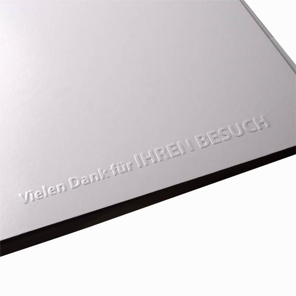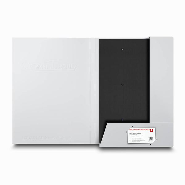 Die Mappe Winkelmann ist eine exklusive Taschenmappe, die durch einer glänzenden Logo-Lackierung und einer edlen Hochprägung besticht. Ein besonderes Highlight ist der haptisch erlebbare Schriftzug „Vielen Dank für Ihren Besuch“, der zusammen mit dem Logo auf der Außenseite hochgeprägt wurde. Im Inneren bietet die Mappe durch einen Doppel-Nut-Steg mit 15 mm Steghöhe enorm viel Platz für Fahrzeugunterlagen und Verträge, während ein Visitenkartenschlitz für die persönliche Note sorgt.
