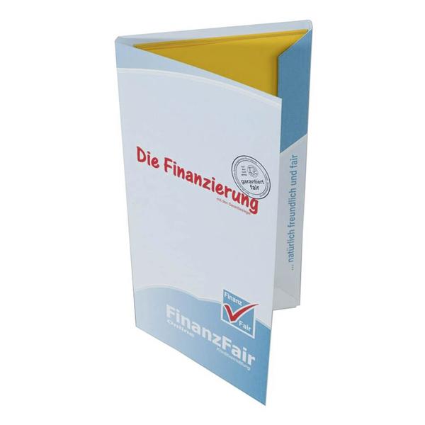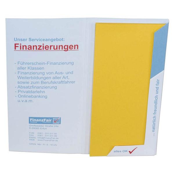 Die L-DIN Mappe mit 3 Laschen mit 5 mm Steg und Visitenkartenschlitz.