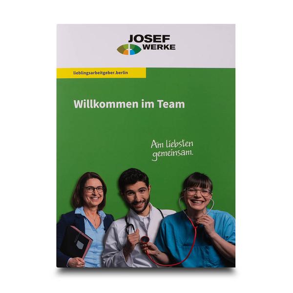 Die Onboarding-Mappe für das Krankenhaus Berlin ist ein herzliches Willkommen für neue Mitarbeiter. Diese ansprechende 6-Seiten-Mappe, gestaltet und produziert von Mappenhaus, dem Spezialisten für hochwertige Drucksachen, bietet nicht nur Platz für wichtige Informationen, sondern vermittelt auch Wertschätzung. Das Sankt Joseph Krankenhaus Berlin, ein Haus der Spitzenmedizin, legt großen Wert auf ein gutes Arbeitsklima und eine professionelle Einarbeitung neuer Teammitglieder. Die Onboarding-Mappe ist dabei ein zentraler Bestandteil. Sie enthält alle wichtigen Informationen für den Start im neuen Job. Die Innenseite der Mappe ist mit drei abgeschrägten Taschen versehen, die mit den Zahlen 1, 2 und 3 bedruckt sind. Diese Taschen dienen dazu, die wichtigsten Punkte für ein erfolgreiches Miteinander zu kommunizieren. So finden neue Mitarbeiterinnen und Mitarbeiter schnell und einfach alle relevanten Dokumente und Informationen.
