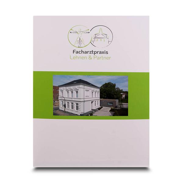 Die OP-Mappen Facharztpraxis Gelenkzentrum ist ein professionelles und vielseitiges Produkt für medizinische Einrichtungen wie das Gelenkzentrum Mönchengladbach. Die Rundlaschen-Mappe ist mit einem einfachen, schlichten Design, dem Logo und Namen der Praxis bedruckt. Eine matte und glänzende Cellophanierung verleiht der Mappe eine hochwertige Haptik und schützt sie vor äußeren Einflüssen. Innen hat die Mappe zwei Laschen auf der rechten Seite, die eine geordnete Präsentation von Dokumenten ermöglichen. Ein Visitenkartenschlitz auf der unteren Lasche sorgt für eine professionelle Präsentation von Kontaktdaten. Diese hochwertige Mappe hilft dem Gelenkzentrum Mönchengladbach, bei Patienten einen bleibenden und kompetenten Eindruck zu hinterlassen. Ihre durchdachte Funktionalität und das ansprechende Design spiegeln den Qualitätsanspruch und die Seriosität der Praxis wider. Sie ermöglicht eine effiziente und repräsentative Übergabe von Informationen an Patienten und Partner und stärkt so die Kundenbindung im medizinischen Bereich.