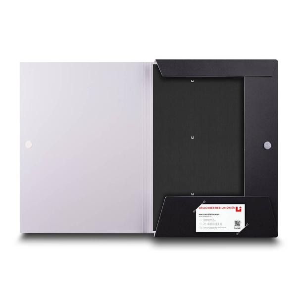 Die Sammelmappe Bestattungsinstitut ist eine exklusive Drucksache, die durch eine edle Heißfolienprägung in Gold und eine hochwertige Haptik überzeugt. Das Design besticht durch den goldenen Schriftzug und das Engel-Motiv auf der Vorderseite, während ein praktischer Klettverschluss und drei variable Innenlaschen für eine sichere Aufbewahrung sensibler Dokumente sorgen. Wir vom Mappenhaus unterstützen Sulfrian Bestattungen dabei, ihre würdevolle Begleitung und Kompetenz in der Bestatterbranche haptisch und optisch perfekt zu untermauern.