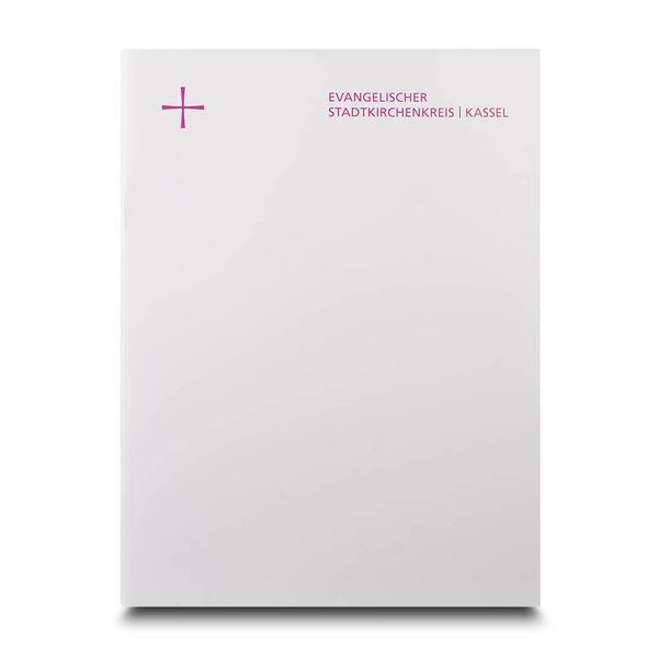 Die Sammelmappe Evangelischer Stadtkirchenkreis ist ein professionelles und vielseitiges Produkt für kirchliche Organisationen wie die Evangelische Kirche von Kurhessen-Waldeck. Die schlichte, weiße Laschen-Sammelmappe ist auf der Vorderseite mit einem Kreuz und dem Kirchennamen in Rosa bedruckt, was Seriosität und Verbundenheit vermittelt. Innen verfügt die Mappe über drei große Laschen auf der rechten Seite, die viel Stauraum für lose Unterlagen bieten. Ein Visitenkartenschlitz sorgt für eine professionelle Präsentation von Kontaktdaten. Diese hochwertige Mappe hilft dem Evangelischen Stadtkirchenkreis, ihre Markenbotschaft professionell und kompetent zu kommunizieren. Ihre durchdachte Funktionalität und das ansprechende Design spiegeln den Qualitätsanspruch und die Seriosität der Organisation wider. Sie ermöglicht eine effiziente und repräsentative Übergabe von Informationen an Mitglieder und Partner und stärkt so das Vertrauen und die Bindung zur Kirchengemeinde.