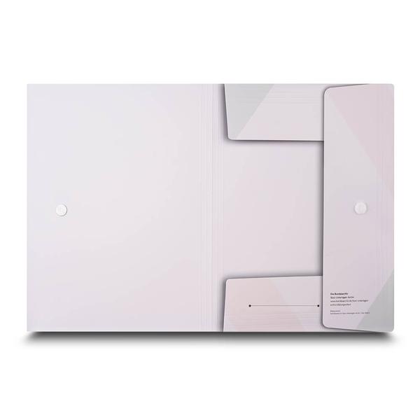 Die Schulungsmappe Bundesarchiv ist eine stabile Sammelmappe mit großer Steghöhe, die umfangreiche Seminarunterlagen sicher aufnimmt und durch einen runden Klettverschluss zuverlässig geschlossen bleibt. Gefertigt aus 300g White Design mit matter Li-Brillantlack-Oberfläche und einseitigem Druck, tragen Titel, Logo und Bildmotiv die Inhalte klar nach außen. Mehrteilige Laschen und ein integrierter Visitenkartenschlitz halten Dokumente strukturiert und sofort griffbereit. Als Hersteller unterstützen wir das Bundesarchiv dabei, Bildungsangebote übersichtlich zu übergeben und Teilnehmenden einen geordneten Einstieg in Schulungen und Informationsveranstaltungen zu ermöglichen.
