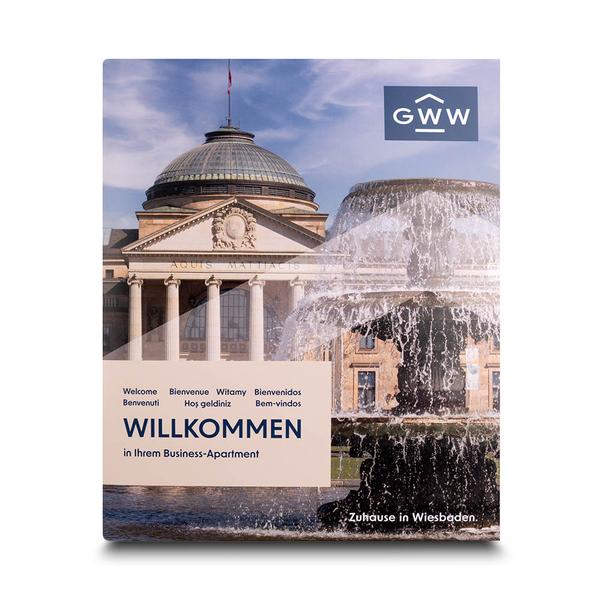 Die Übergabemappe Wohnbaugesellschaft ist ein professionelles und ansprechendes Produkt für Wohnbaugesellschaften wie die GWW Wiesbaden. Die Willkommensmappe ist mit einem Foto des Wiesbadener Kurhauses und dem GWW-Logo auf der Vorderseite bedruckt. Die Mappe hat innen auf der rechten Seite zwei gesteckte Laschen und einen Visitenkartenschlitz. Innen ist die Mappe beige und auf der linken Seite ist ein Willkommenstext auf Deutsch und Englisch bedruckt. Die Mappe ist mit Li-Brillantlack matt veredelt. Diese hochwertige Mappe hilft der GWW, bei Kunden einen bleibenden und kompetenten Eindruck zu hinterlassen. Ihre durchdachte Funktionalität und das ansprechende Design spiegeln den Qualitätsanspruch und die Seriosität des Unternehmens wider. Sie ermöglicht eine effiziente und repräsentative Übergabe von Informationen an Kunden und Partner und stärkt so die Kundenbindung im Wohnbau.