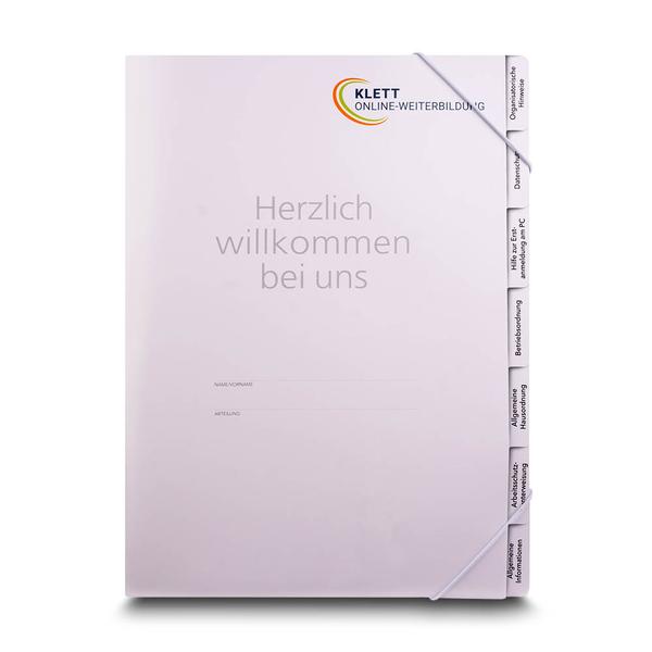 Die Welcome-Registermappe Klett OWB ist ein professionelles und vielseitiges Produkt für Organisationen wie die Klett OWB. Die Mappe hat einen sicheren, weißen, über Eck geführten Gummizugverschluss, der 4-fach geöst ist. Die Vorderseite ist mit dem Logo und dem Titel "Herzlich willkommen bei uns" bedruckt. Die Mappe hat an der Seite sieben Registerunterteilungen mit sieben bedruckten Taben. Innen auf der ersten Seite links befindet sich eine transparente große Maxi-Tasche für DIN A5. Die Mappe hat eine Li-Brillantlack matt Veredelung. Diese hochwertige Mappe hilft der Klett OWB, ihre Markenbotschaft professionell und kompetent zu kommunizieren. Ihre durchdachte Funktionalität und das ansprechende Design spiegeln den Qualitätsanspruch und die Seriosität der Organisation wider. Sie ermöglicht eine effiziente und repräsentative Übergabe von Informationen an Klienten und Partner und stärkt so die Kundenbindung im Bildungsbereich.