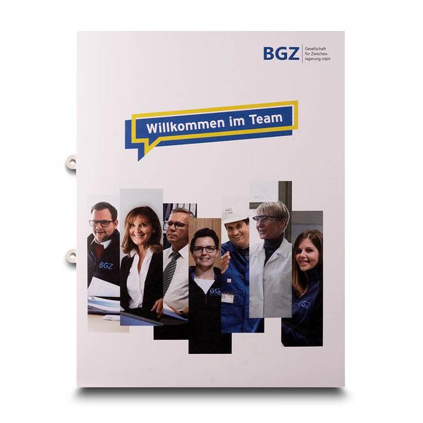 Diese Schnellhefter Mappe ist ein ideales Organisationsmittel, um neue Mitarbeiter herzlich willkommen zu heißen. Sie ist mit einem beweglichen Steg mit Abheftung ausgestattet, der eine flexible Handhabung der Unterlagen ermöglicht. Links im Inneren befindet sich eine große Dreiecksfolientasche, die zusätzlichen Platz für Informationsblätter oder Broschüren bietet. Unternehmen wie die BGZ nutzen diese Mappe, um den Onboarding-Prozess zu strukturieren und alle wichtigen Dokumente wie Arbeitsverträge, Einarbeitungspläne oder Unternehmensleitfäden übersichtlich und professionell zu bündeln. Wir als Ihre Druckerei sind Spezialisten für Präsentationsmappen, die besonders sind und Marken-Botschaften hochwertig präsentieren. Wir unterstützen Unternehmen dabei, einen reibungslosen Start für neue Mitarbeiter zu gewährleisten und den Teamgeist von Anfang an zu stärken.